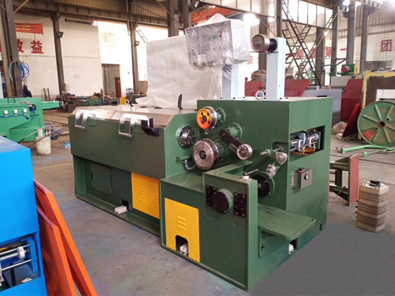 Tegningsmaskinen Rustfrit ståltank er en specialiseret industriel maskine, der bruges til at reducere diameteren af rustfrit ståltråd gennem en række tegningsdis. Et unikt træk ved maskinen er dets integrerede vandtanksystem, der er designet til at afkøle og smøre ledningen under tegneprocessen. Tegning af rustfrit ståltråd udgør særlige udfordringer på grund af materialets hårdhed og dets tendens til at generere varme under tegneprocessen. Maskinen fungerer ved at trække ledningen gennem en række gradvist mindre matriser, som hver reducerer ledningsdiameteren og forbedrer dens mekaniske egenskaber. Vandtanken fungerer som et afkølings- og smørekar, hvilket sikrer, at ledningen og matrisen opretholder temperatur og overfladeforhold under hele tegneprocessen. Ved at påføre et tyndt lag smøremiddel på ledningen minimerer maskinen friktion, reducerer matrisen slid og sikrer en glat overflade på ledningen.